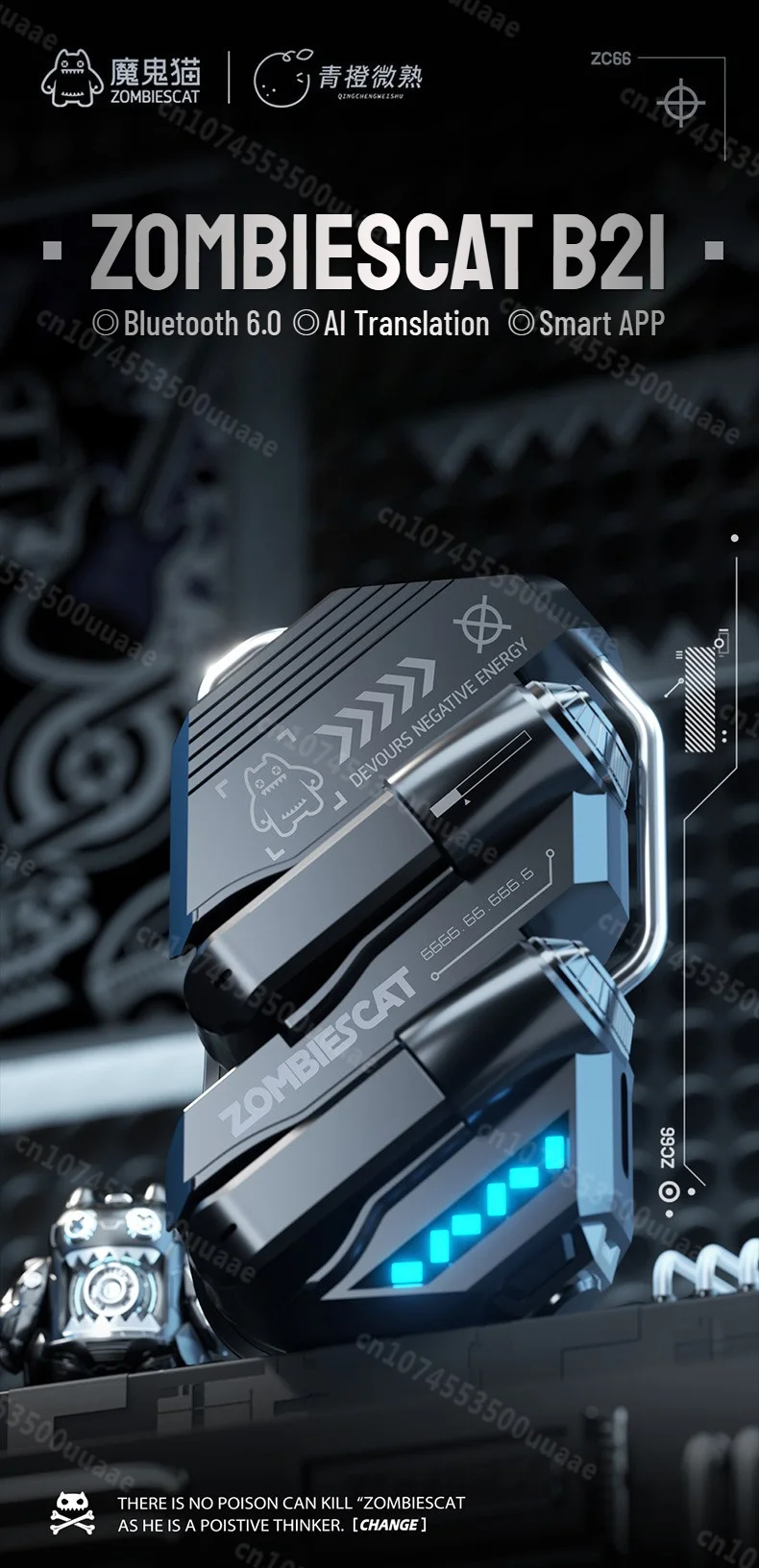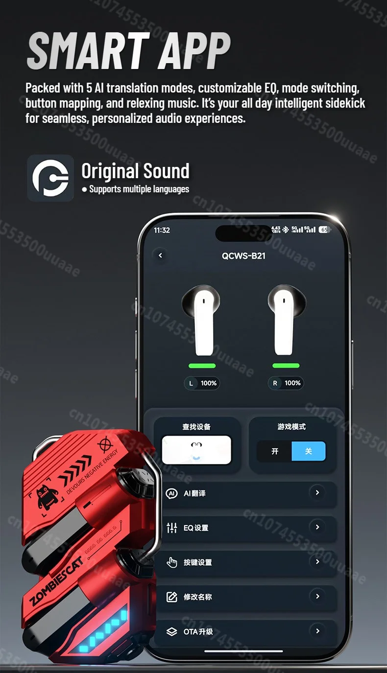 Zombies Cat Alloy Mecha Bluetooth 6.0 Earbuds Real Time Ai Translation Headphone